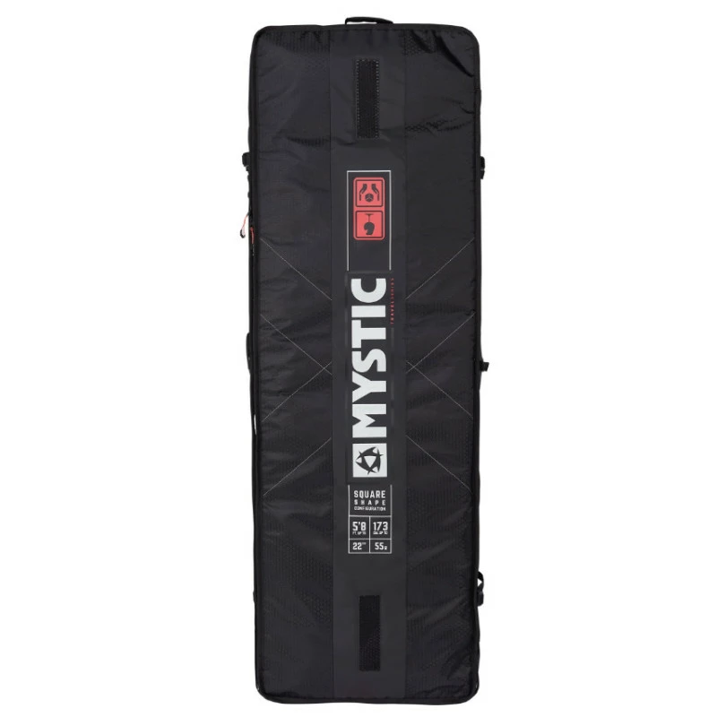 Si vous souhaitez emporter le plus de matériel possible, optez pour le boardbag Mystic Gearbox Square. La version 5’8 s’adapte jusqu’à 265L !