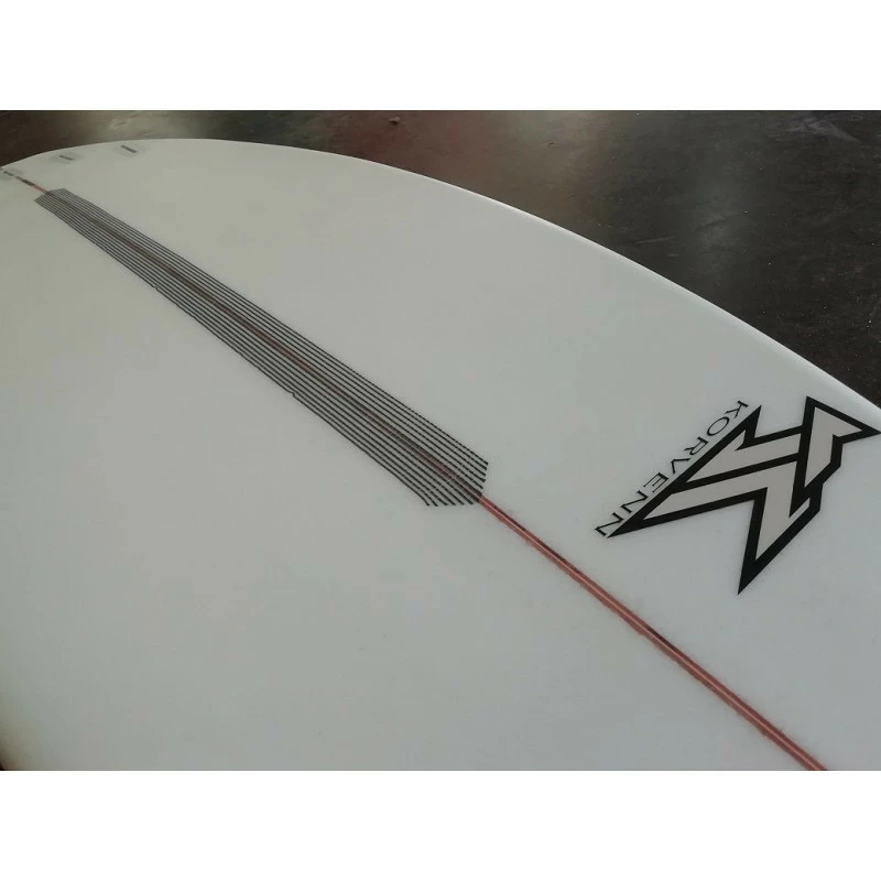 Construite en epoxy avec un pain de mousse de 26kgs/m3, pourvu d’une latte centrale et des renforts carbone, Korvenn propose une construction haut de gamme à la finition haut de gamme.